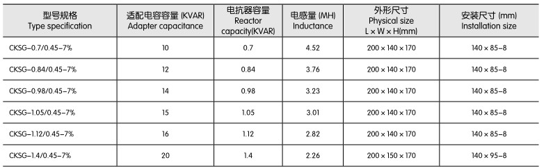 ● 低压三相串联电抗器CKSG 系列(7%) 参数表