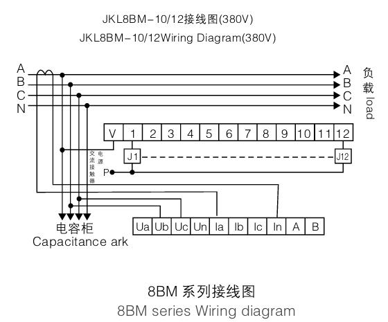 JKL8CM/8BM 系列智能型(数码管显示)无功功率自动补偿控制器,适用于低压配电系统电容补偿装置的专用控制器。且适应各种不同参数配电系数,运行稳定可靠,补偿彻底,操作简单,使功率因数达到用户预定状态,提高变压器的利用效率,减少线损,改善供电的电压质量。